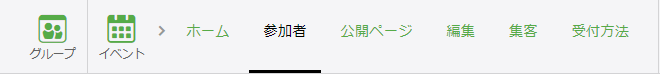 2. 「グループ」(「オーナー」)の下に、作成したグループの一覧が表示されます。参加者リストをダウンロードしたいイベントのステータス(状況)に応じて、「公開中」あるいは「終了」をクリックします。