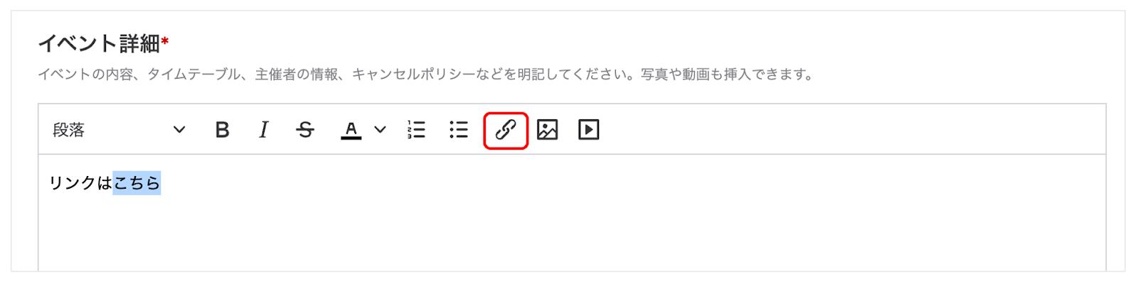 イベントページの「イベント詳細」ではリンクを設定できます。